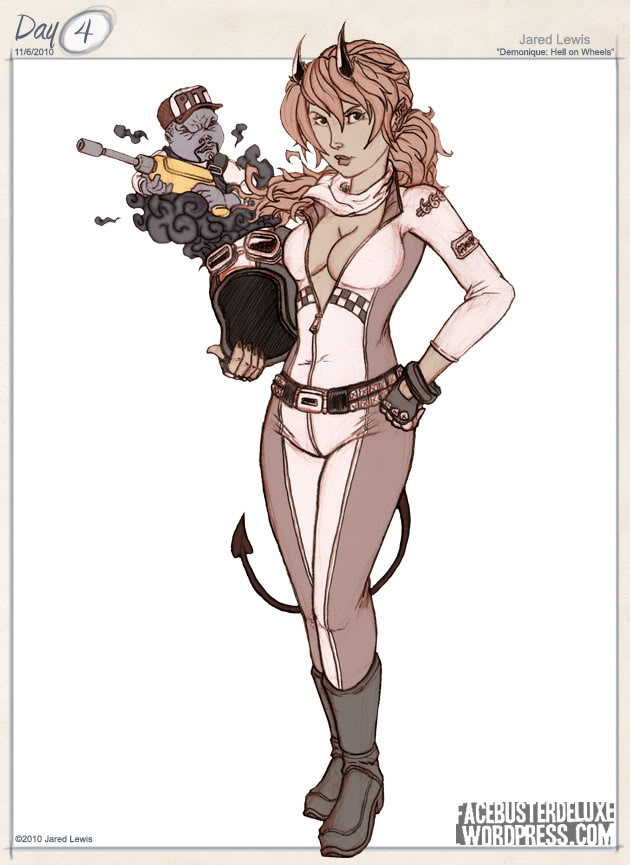 Now there are rumors that DeVitesse (or someone… or something bearing her likeness) is back. And looking to reclaim the top of the racing ranks. Some claim that the only difference between the Monique of yesteryear, & this new, ominous one, are the retractable horns & tail. With the help of her demonic cherub pit crew that appear & disappears in puffs of acrid black smoke, the Hell on Wheels racing team is looking for a few trophies. And souls.