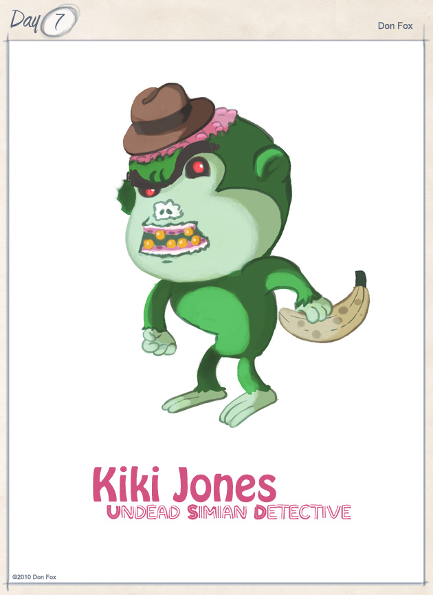 The first thing he saw that moved was moving away from him. It looked like a giant lopped off banana with arms, but no legs. It kind of floated along a few inches above the ground when it wasn’t reaching up with its long yellow arms to swing itself from the low hanging branches from tree to tree. It was a colourful world, and in spite of himself, Ikey felt himself relaxing. That of course put him even more on guard. He’d seen some weird things in space, but never before a piece of fruit with arms. Then it turned around and started back toward him. It had eyes! and the arms had hands with opposable thumbs! He wondered if it had sharp pointy teeth and decided for the better part of valour.
