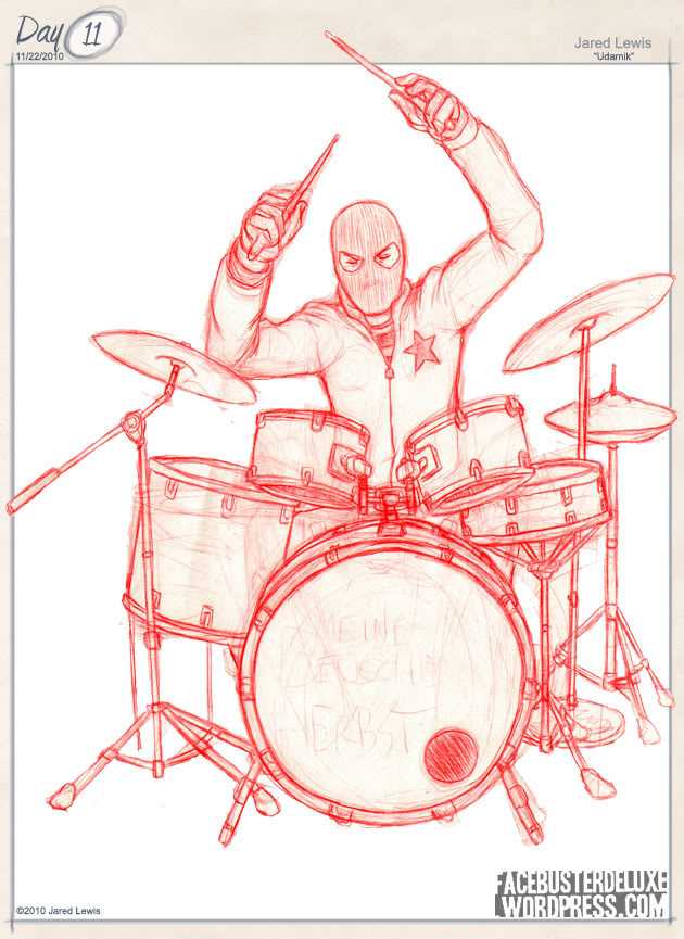 He calls himself Udarnik. Of course “Udarnik” is the Russian word for Drummer.