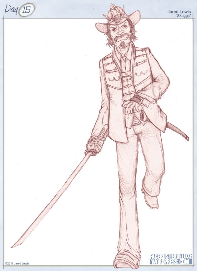 Of the three, Skaggs would be the wild card. I’m thinking a super lanky Steve Buscemi with permanent kabuki intensity brought on by years of trucker speed abuse. In context of the story, I’d like to think that he’s one of those characters that gets dispatched almost too easily. But whenever you think he’s gone, he some how comes back. And he’s even more wall-eyed & jittery than ever. I tried giving him the feudal Japan/redneck aesthetic I want to give everything in the comic but I don’t think I pushed it far enough. I do like the idea of a Richard Petty hat with a tsuba on it though. Still he’s going to need some tweaks.