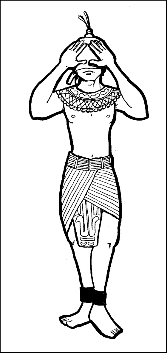 The Eye of Horus is kept in the dark of the hood he wears in order to better prophecize. He can see where others cannot through visions and through the eyes of others. He is, however, intensely secretive and will not always reveal what he knows.