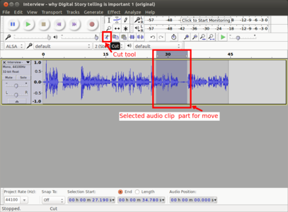 Maybe you just want to split a song in half or want to delete a section out of the middle. It’s all do-able and straightforward with audacity. Use either the Time Shift Tool or the Delete Key to manipulate your cut out section.