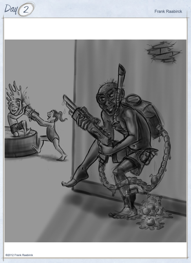 This is my character for Day 1: Johnny Guitar, the guitaromancer. He can make magic with his guitar. But not in a “his music is so good it will touch the deepest core of your soul and changer you forever” way. More in a “His guitar can shoot fireballs” kinda way.