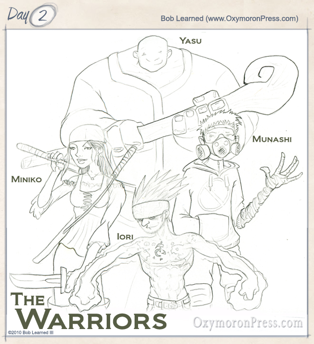 (This is a script I found recently in my records…I have never draw these characters before but they have been bopping around my brain for over 10 years. Does anyone have a better name for the group… I am taking suggestions, I don’t want to use the warriors.)