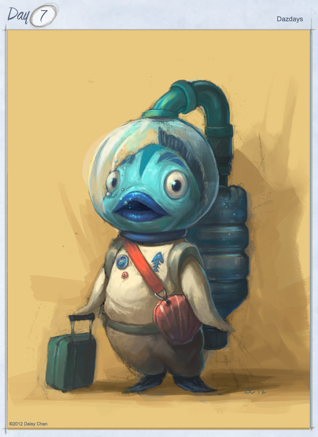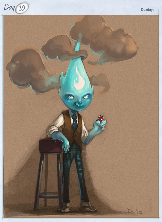 This is another friend-inspired piece…At first I wanted to tackle this character in a more complex way with actual knight’s armor-however I got so frustrated with painting those details in such short time that I had to leave that initial concept behind. This doodle came out rather spontaneously and I feel was much more loose and fun to paint with the time constraints. Anyway…wow..can’t believe this is my last character…!