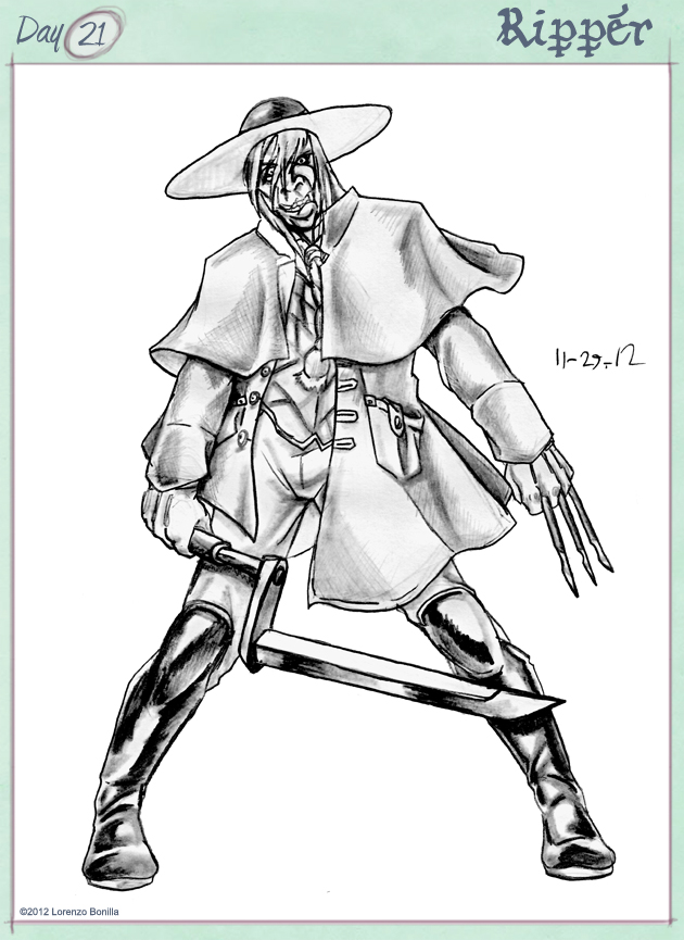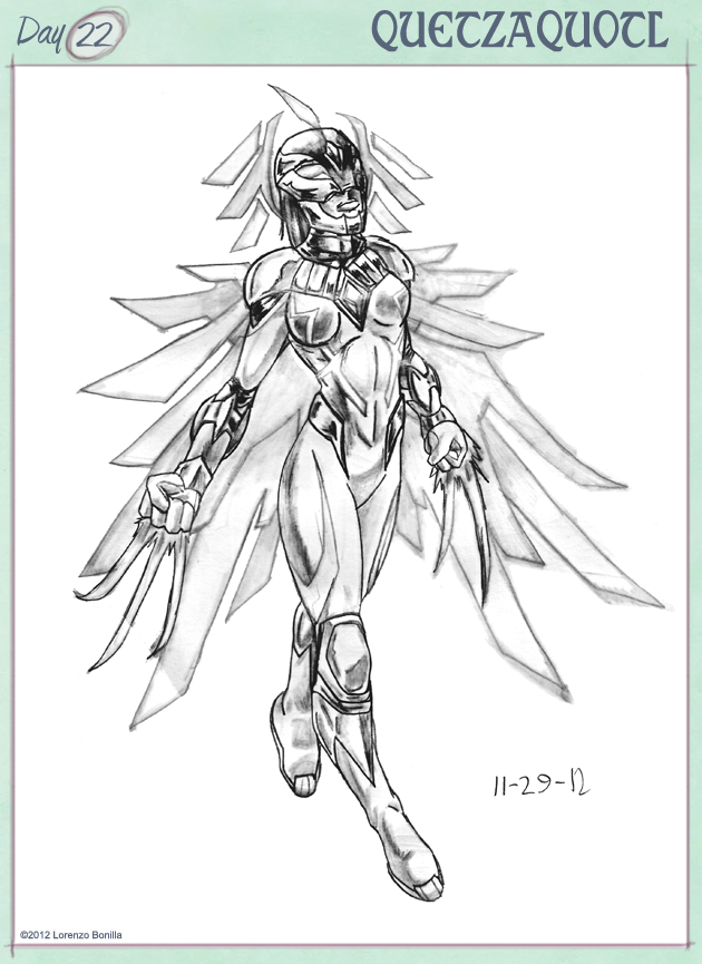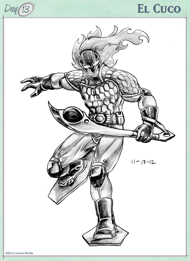 My name is Lorenzo, and I am an aspiring sequential artist who specializes in Character Design. I participated in the 30 Character Challenge last year and was short by ten characters, that I completed at a later time, but this time I plan to fulfill my end of delivering a full 30 characters for this year. My designs and creations can be found on my deviant art profile /emeraldfury, or at my website at www.lorenzobonilla.com.