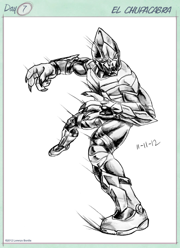 Conception: I like the idea of designing a Hispanic super team and given our culture’s fascination of myth and monsters; I felt a monster based on Latin America’s most popular urban legend deserved the superhero treatment. His design has a direct influence with Ultimate Quicksilver, but I broke up sections of the outfit to give him an insectile appearance while using edges to accentuate speed.