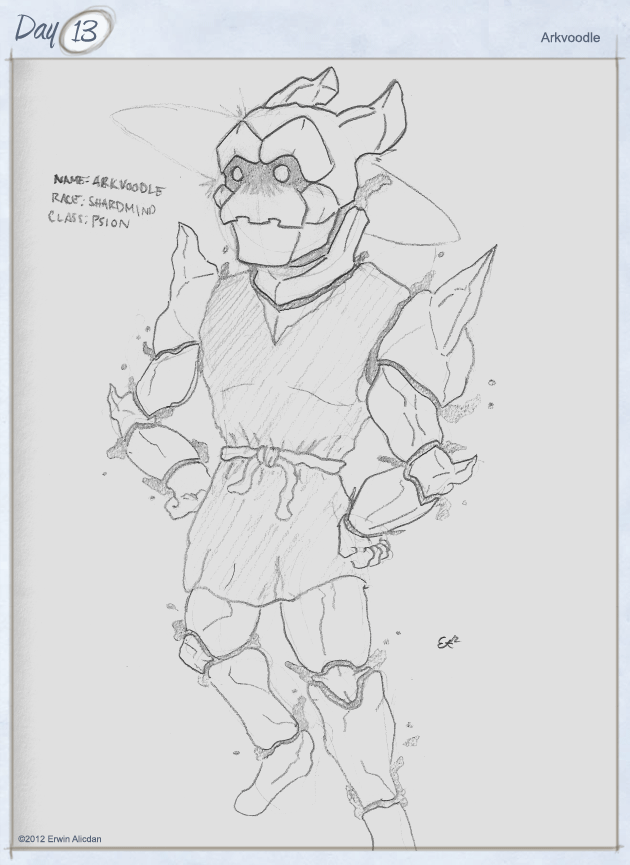 Here’s last year’s entries http://www.30characters.com/2012/12/01/erwin-a-30-characters-in-30-days-2012/ , and I’m hoping I’ll have a completed catalog for this year as well. I’m not sure what the character focus will be for this year. Rather, I’d like to do more than just scan doodles this time around; maybe fool around with coloring in a few pieces.
