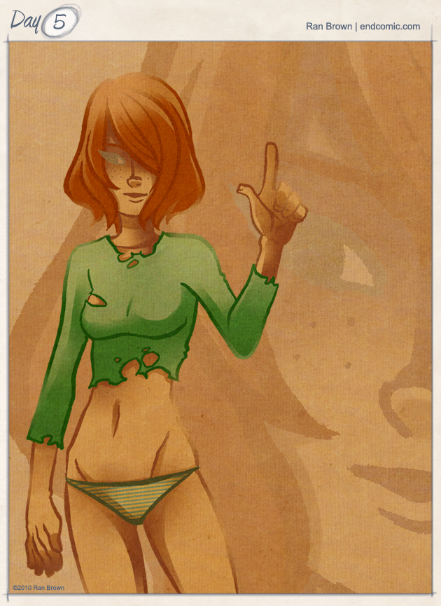 Getting to know the community led me to some great opportunities at SJ, and as a result, I was an administrator there for more than a couple years and spoke on a number of webcomics panels at various conventions on their behalf. This led me to meet some interesting people, and made me realize that I’d lost sight of what I’d joined for-making comics, rather than just talking about them. I resigned and took a couple years to sort myself out, and as a result, my husband/writer, Cory Brown, and I launched the webcomic The End last May. We’ve been doing well enough that we’ll be launching a second comic, In Absentia, at the end of January 2011.