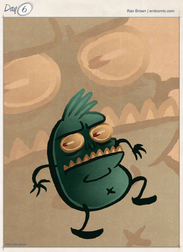 I’m the illustrator and webmaster behind the webcomic The End (currently on hiatus for the next week and a half while I am deeply involved in making one of my best friends’ weddings awesome), the illustrator/writer for Strike The Earth!, which is a webcomic about Dwarf Fortress, and a member of the fairly new (but still awesome) collective called Open Fire!. You can also find my portfolio here, or follow me on Google+ or Twitter.