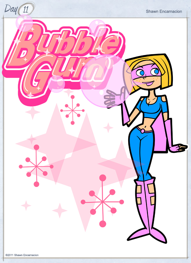 Daughter of a wealthy inventor of designer candies and sweets, Candi Kellogg showed a creative flair for the field of chemistry and cooking her own delicious treats as well. Inventing a special formula for various gums, she has created a super power for herself. Gum bubbles are her specialty and her gums can blow many different kinds. Grape gum bubbles float and carries her into the air. Blueberry gum bubbles burst a sticky gum-glue all over a villainous victim. Cherry red gum bubbles bounce any on-coming missiles, falling buildings, debris and even other super powered energy blasts. Sour apple green gum tastes especially good.