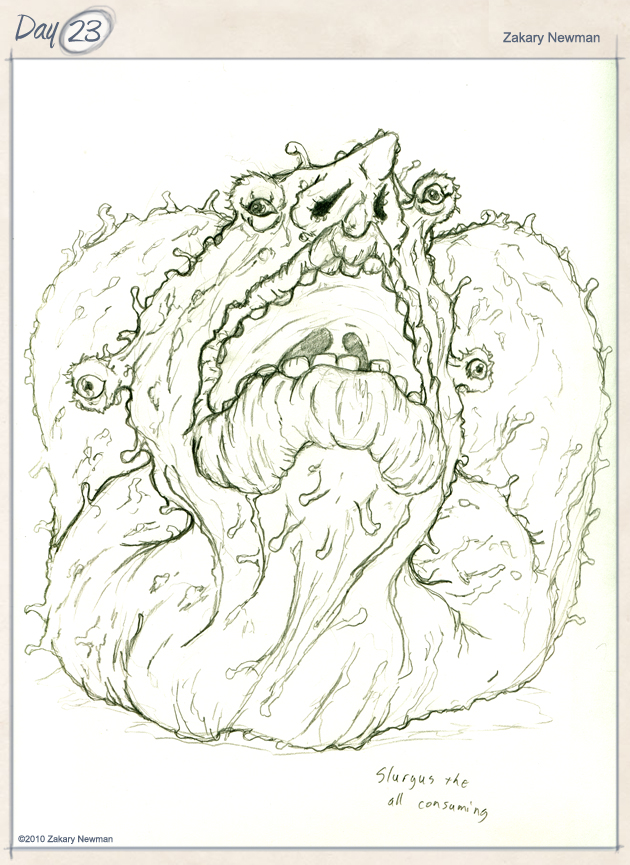 Slurgus is a giant tongue. He lurks in the dark, dank places deep beneath cities, feeding on the old and forgotten knowing that eventually everything will be forgotten and he will feed.