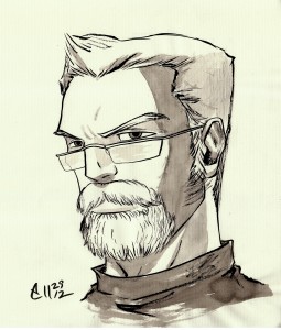 Really, he doesn’t have any truly defining features. He wears a lot of t-shirts and dresses very casually (perhaps more so than his bosses would like). Jeans and perhaps some khakis on occasion. He is not cut out to be a businessman or hold a white collar job, but he puts a lot of effort into everything he does.