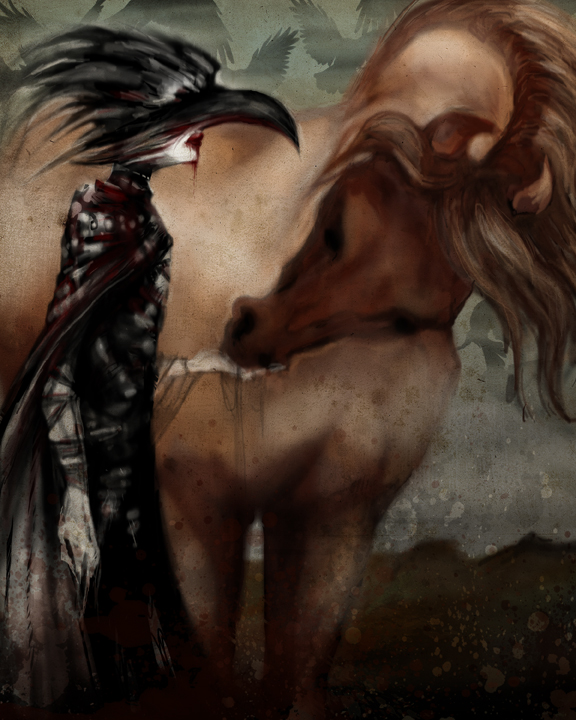 “The Storm Crow. Whether she brings the war or is merely excellent at knowing where war is about to happen is not known, but if she is seen, war is not far behind. It is said that any who welcome her offer of aid will win, but to turn her away is to lose every battle you will ever fight, no matter how small”