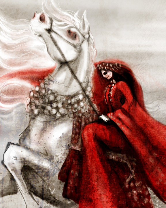“The Shattered Queen is pale as milk, clothed in blood, riding a ghost. The moon is between her lips, the winter is in her hands. She came from the Lands Beyond.”