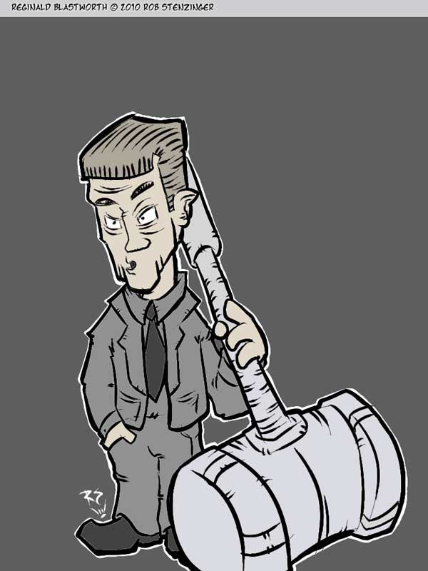 Reginald Blastworth plays percussive instruments in the Tempo City Orchestra. That’s his day job. At night he moonlights as a goon for hire, wielding his powerful drum hammer to guard, steal, or smash whatever his client pays him to.