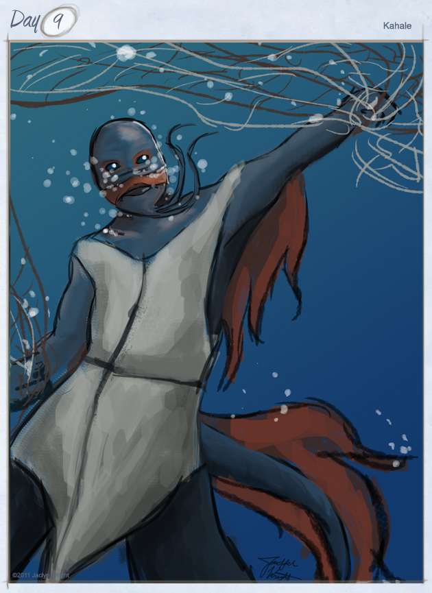Just taking a breather… underwater. Kamoana is part of an underwater species often forced into slavery. She herself is currently under the thumb of a particularly grueling master, and is currently taking a short break.