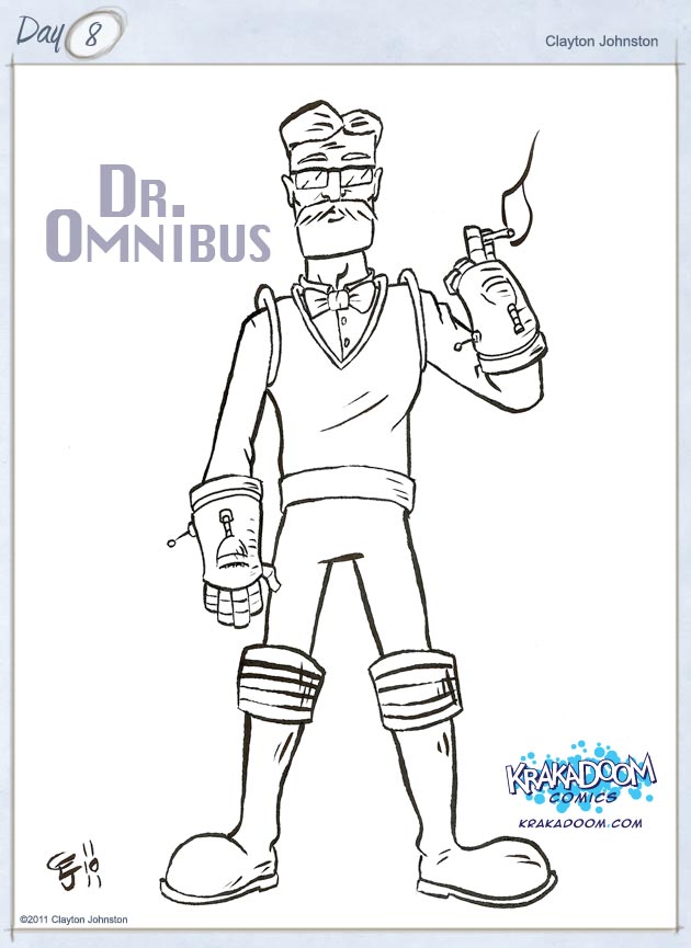 Dr. Omnibus was one of the first superly-abled born after the Roswell incident. Gifted with super-intelligence, Dr. Omnibus quickly rose to prominence as a hero, fighting some of the earliest super villains such as the Black Mollusk. Dr. Omnibus made his home in Omni Keep, an advanced lab built on a lake near Megalo City.