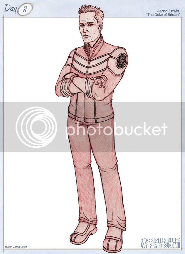 There of course is no Brixton title in British Heraldry. Figured it was best to make one up as opposed to stepping on a real duke or something. I went with Brixton simply because of the Clash song (& why there’s also maybe a little bit of Paul Simonon going on in the face). Originally, I was just planning to make him look like an upper class, well-yet-casually dressed Englishman in a suit. But I thought that might be a cop out. So I started to work on something that might be his Hero suit, intending it to be something you’d see in like an X-men movie or Wildstorm book from the late nineties/early oughts. Ultimately I’m not super thrilled with it because I don’t think it gets the point across. What I really I wanted, was to kind of give the idea that he’s been a bit vestigial & out of touch, & the last time he was a big deal was that Oasis/Spice Girls sort of era. Oh & he’s supposed to be levitating, not standing on tip toes. It might look a little strange without a point of reference. And again, I’ll give it a proper color job if I ever have the time, but that’s looking less & less likely.