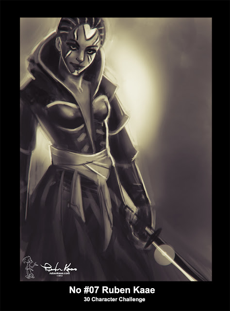 “An octopus weilding six sickles and one shield. Enghel. Leader of a school of master assassins. The armor, eyepatch and weapons are all a part of an act though. If it needs be, he can blend into the environment like nobody’s business. He’s convinced that something is … off… due to the behaviors of Christiæn & Arethusa. Two of his underlings, Engel and Goossen have gone missing. They will be discovered in various states of insanity, getting worse with time, before they die under mysterious circumstances. Goossen’s attempts at communication almost implicates-“