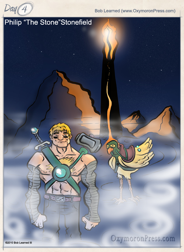 Philip was a professional football player. He was very successful, until one day he was injured during the game. Phillip found himself in a dark world where a Sorceress gave him a Sword and Hammer to fight for the forces of good. With Battle-Bird as his steed, he fights the dark forces to save the land he now calls home.