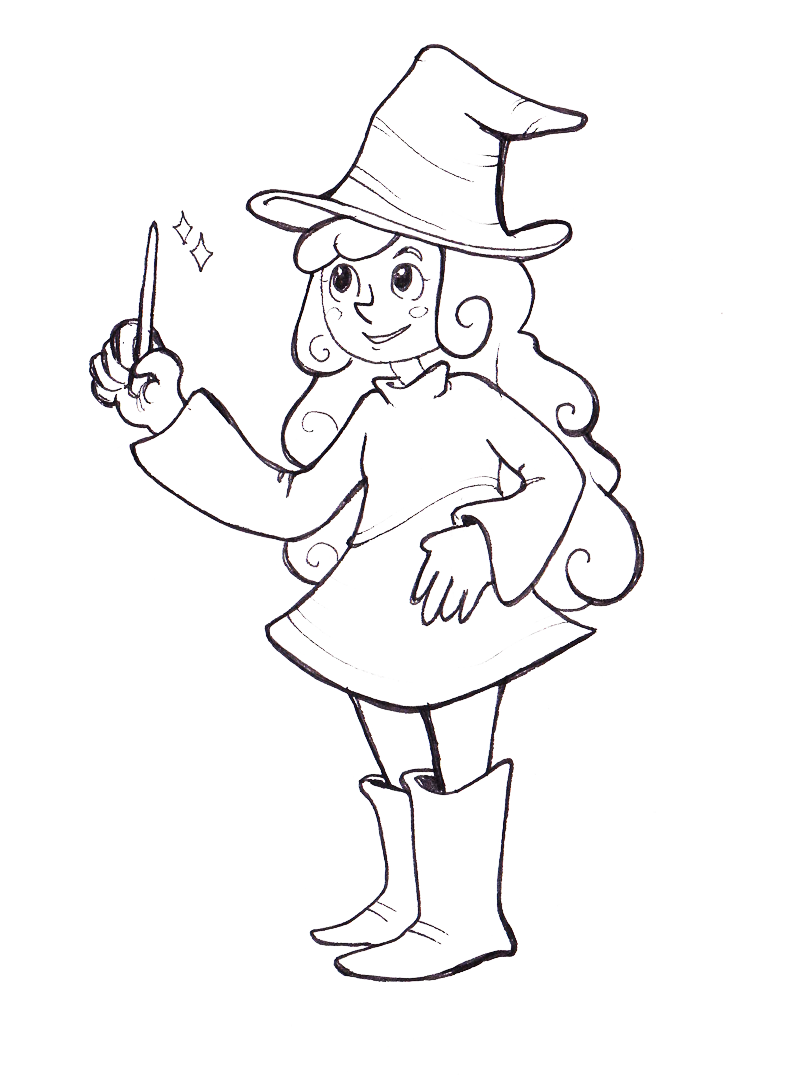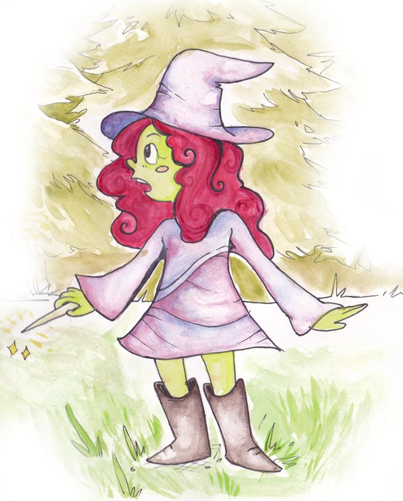 But here’s a cute illustration of a witch! She’s part of a project I’m working on in my Narrative / Children’s Book Illustration class I’m taking.